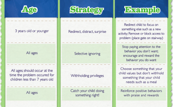 Several strategies for effective discipline are shown in the toolkit below.  Ask yourself how you can adapt and combine these strategies for your child.  For example, selective ignoring can be combined with redirecting by ignoring a child's whining because she is upset that she can't watch television and then redirecting her attention to finishing a puzzle to distract her.