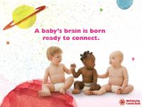 A baby’s brain is ready to connect. Babies build their brains by connecting with you and the world around them. At birth, a baby’s brain has 100 BILLION nerve cells called neurons that are waiting to connect. Each neuron can make thousands of connections or only a few depending on a child’s environment and experiences. Spending quality time with your child can increase your child’s brain power. You can help your baby build brain connections by talking, hugging, singing, reading, playing, and exploring the world together.